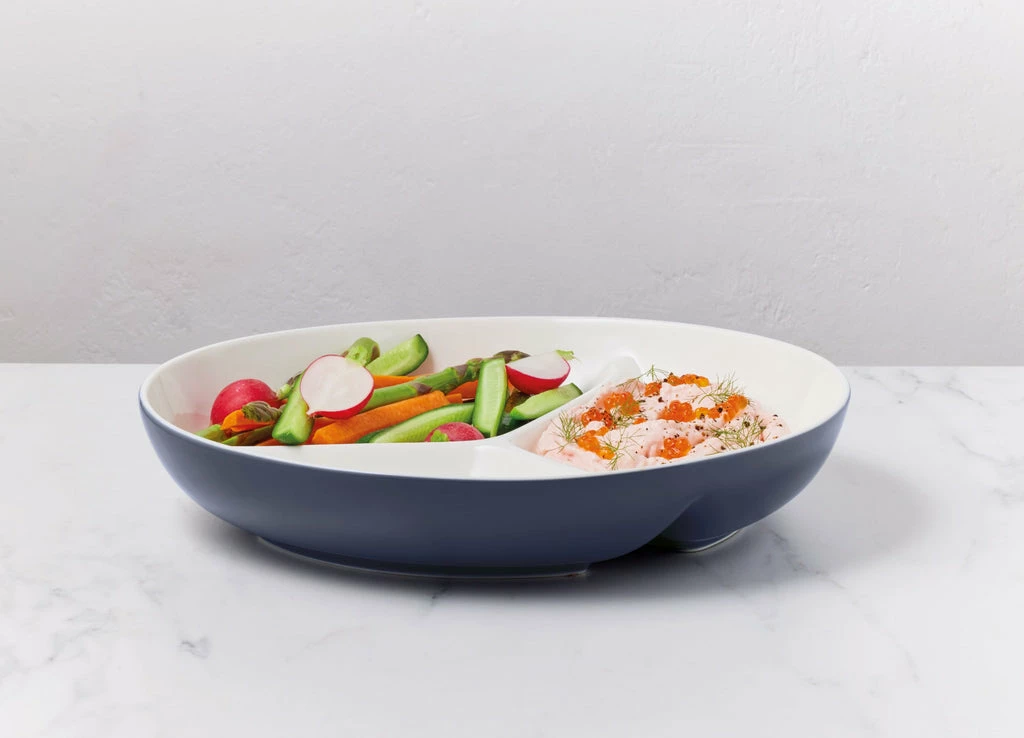 - Divided serving platter with 3 compartments: Perfect for snacks or finger food
