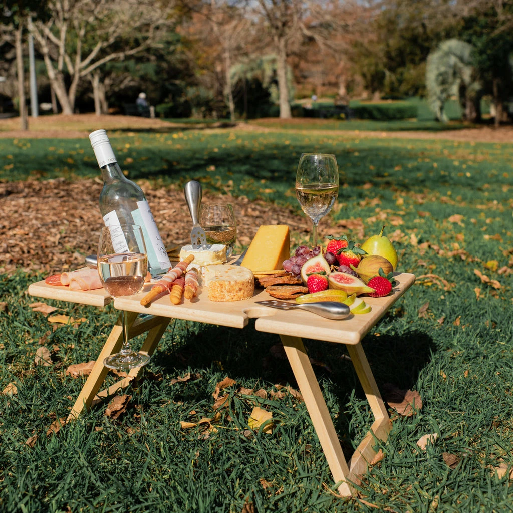 Make your picnic a little fancier thanks to the Peer Sorensen Folding Wine/Picnic Table Rubberwood.